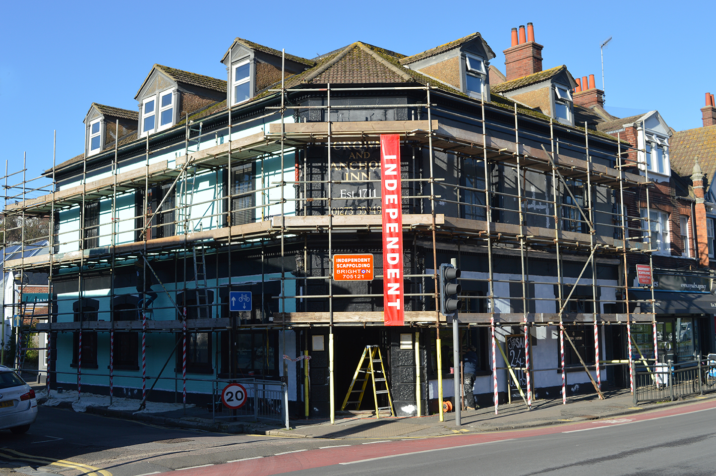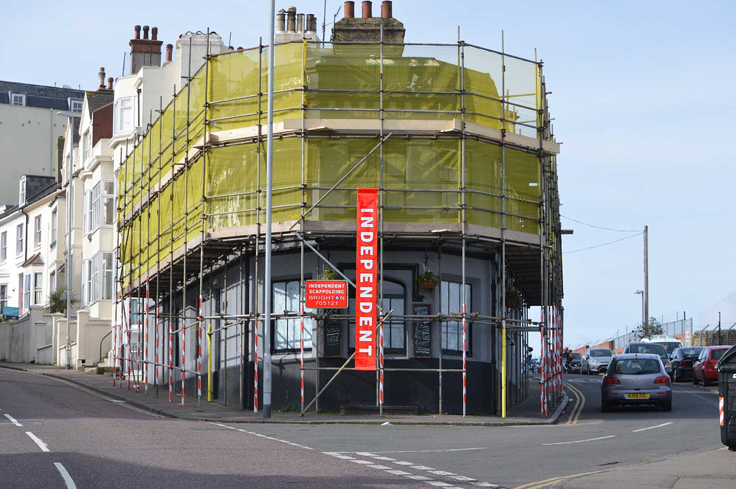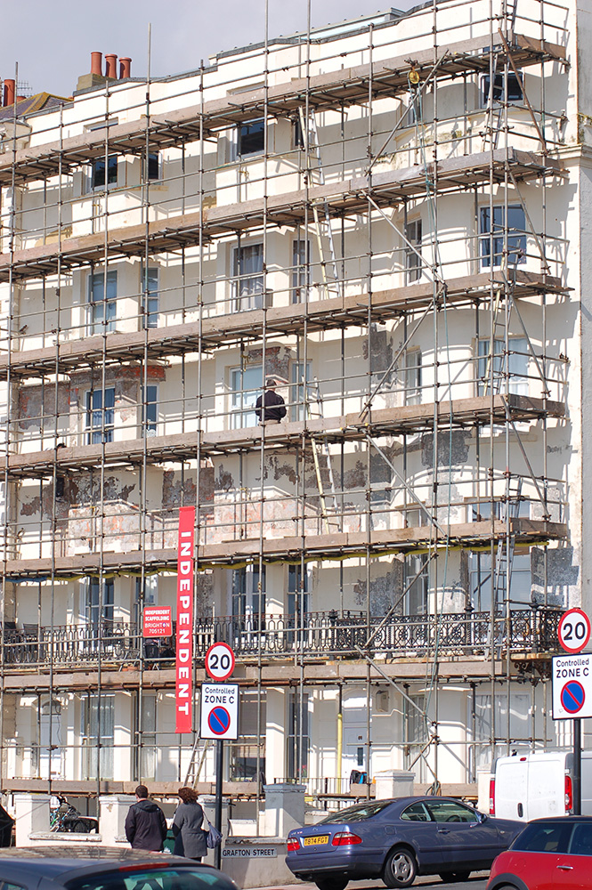 Our work is mainly in the domestic sector; scaffolding private houses for painting, roofing and chimney works etc. Our work also includes numerous public houses, the Duke of York Cinema, Shoreham Airport terminal, the Jill windmill in Clayton, the Sea Life Centre and commissions for Brighton & Hove Arts Festivals.